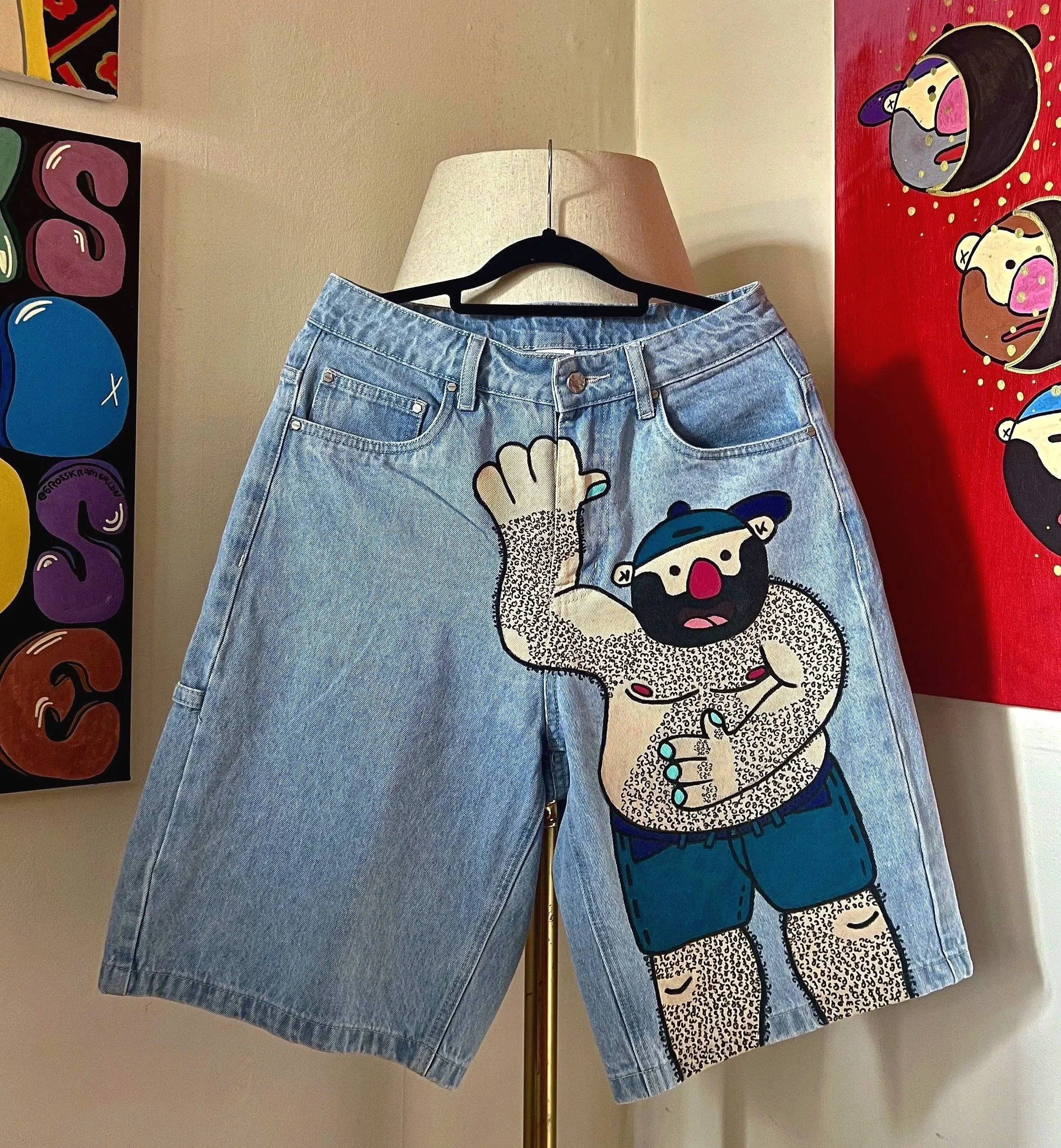 Kramer moves between canvas, murals, paper, digital work and clothing, using acrylics and Posca markers to explore a bold, expressive way of making images.